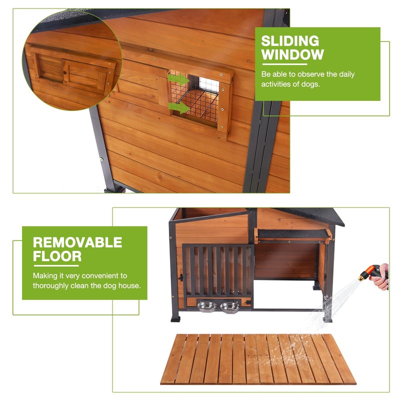 • Easy to Clean and Ventilate: The dog house is designed with a removable floor and an openable roof, facilitating thorough cleaning and ventilation. The sliding window design allows you to monitor your pet's activities at any time, ensuring their safety and comfort.
