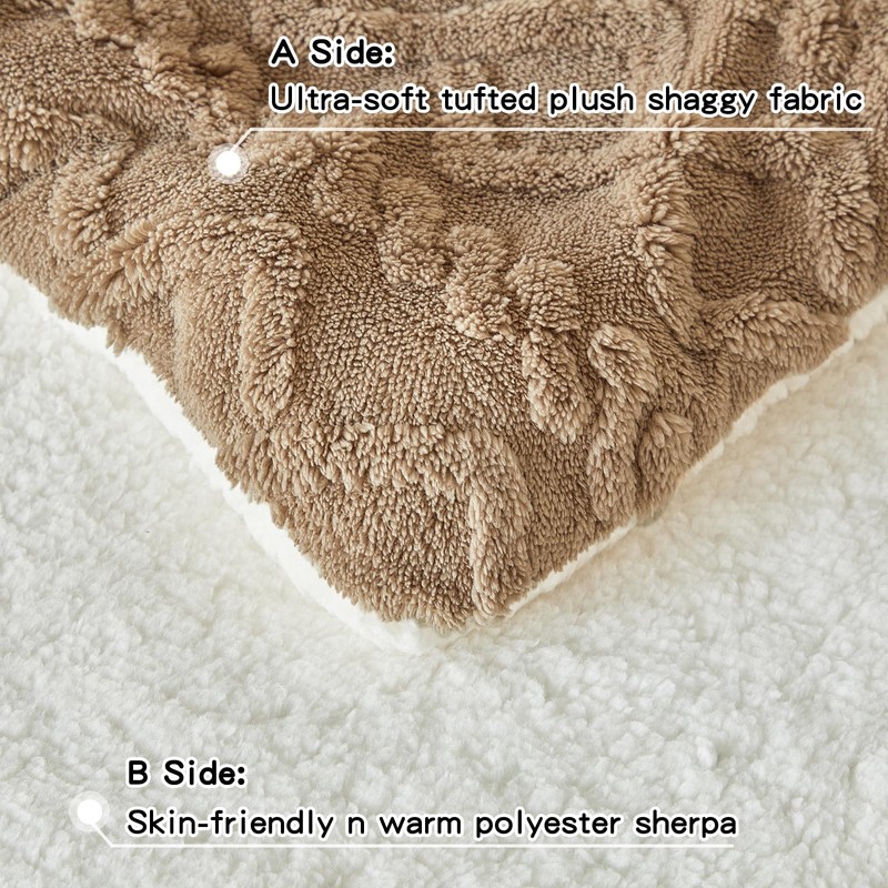 - Soft & Fluffy- A side of the comforter is ultra soft tufted faux fur plush polyster, B side is fluffy warm sherpa. Both sides are made of nice thermal ability material, giving you exceptionally soft and milky feeling, help you keep warm in the cold winter.