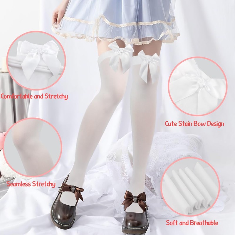 - MULTIPLE OCCASIONS: Bow tie thigh high stockings are easy to wear as an accessory to skirts, dresses and other clothing in daily life, or to wear with special clothing to create a stylish and beautiful look. And bow stockings are highly adaptable for many occasions, such as theme parties, graduation ceremonies, gatherings and so on. Wearing them as a costume accessory on important festivals such as Halloween, Christmas and New Year's Eve will not look out of place.