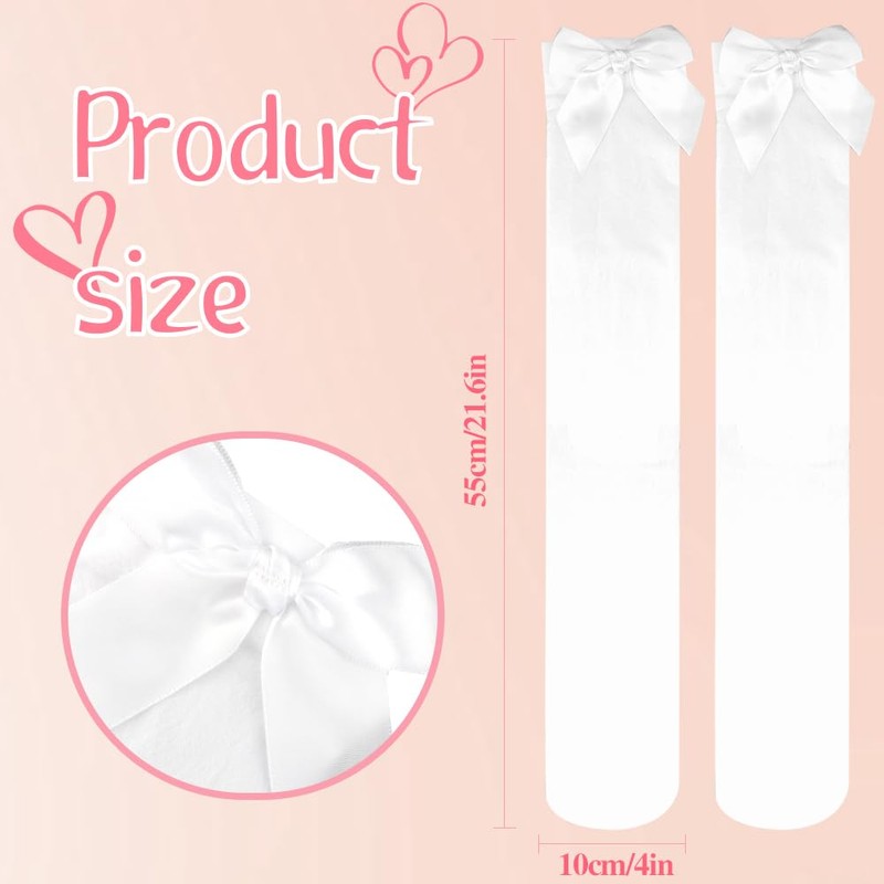 - THIGH HIGH SOCKS WITH BOWS: There are two colors to choose from, black and white, inside the product, each pair of tall socks is about 21 inches long with plenty of elasticity, which can be worn by people of most heights and fit most people's body shapes, showing your unique charm.