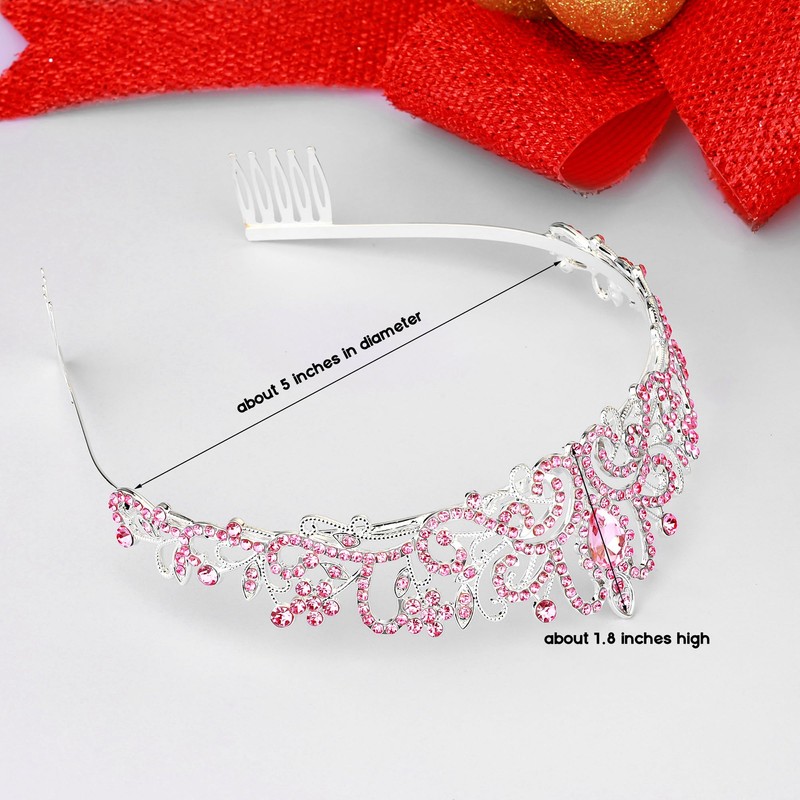 - 🌸Material: hecho de vidrio, diamantes de imitación y aleación. Encrustada con impresionantes cristales rosados de varios tamaños, esta tiara brilla brillante como el diamante. Sin igual en perfección y claridad.