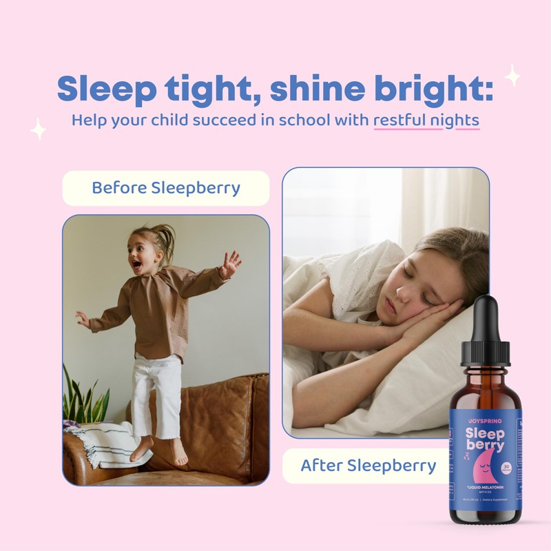 JoySpring SleepBerry Liquid Melatonin for Kids - Natural Sleep Aid with Elderberry and Vitamin D - Boosts Immune System While They Sleep (1 Fl oz)