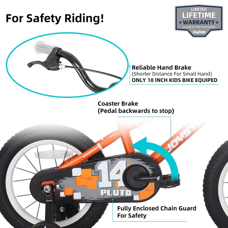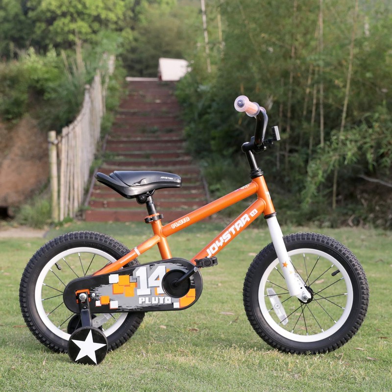 JOYSTAR 14 Inch Pluto Kids Bike with Training Wheels for Ages 3 4 5 Year Old Boys Girls Toddler Children BMX Bicycle Orange
