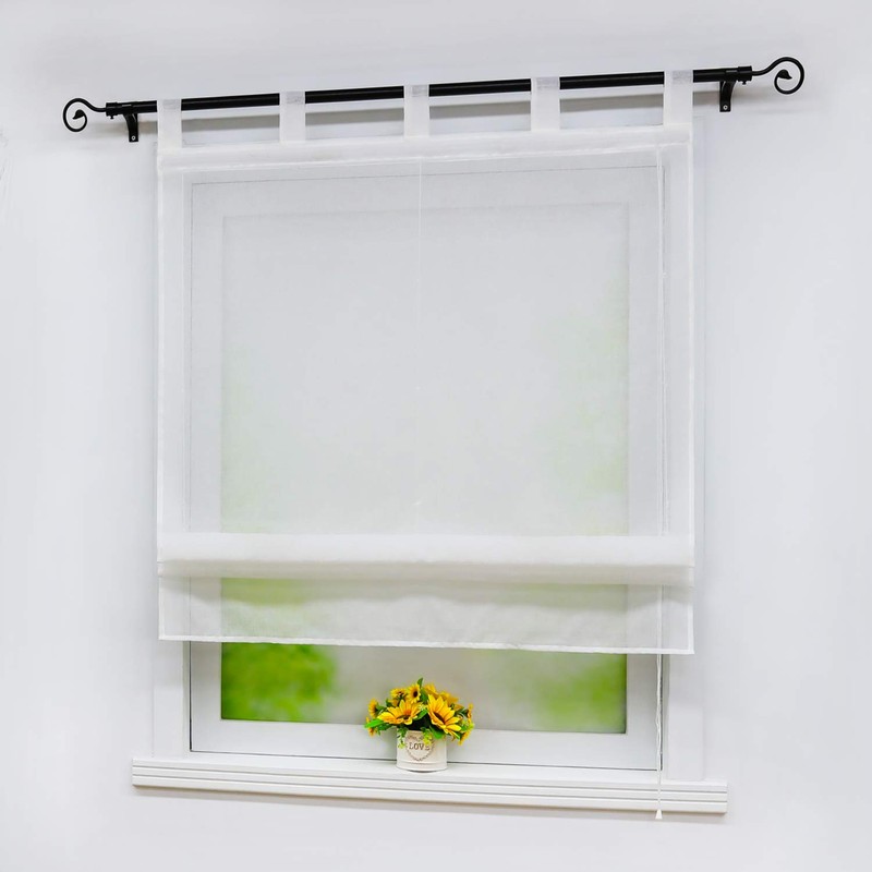 Joyswahl White Roman Blind Linen Effect Linen Texture Semi-Transparent Roman Blind with Loops Plain Colour Window Curtain 1 Piece