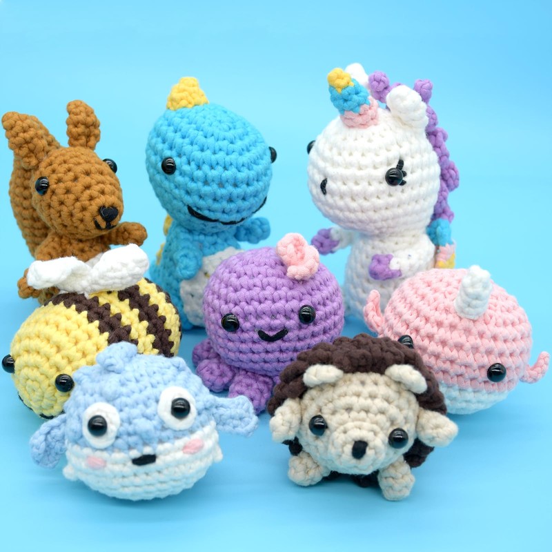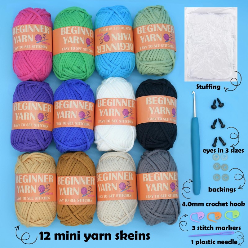 - All-in-one Crochet Kit For BeginnersEach beginner crochet kit comes with a 4mm crochet hook,stuffing,a plastic knitting needle,3 locking stitch markers,6 animal eyes(in 3 different sizes). All the basic crochet accessories you need are included, no need to buy the whole crochet kit with specific pattern and you can create your unique one and branch out with more beautiful new projects!