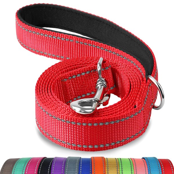 Joytale Double-Sided Reflective Dog Leash, 6 FT/5 FT/4 FT, Padded Handle Nylon Heavy Duty Leashes for Small & Medium Dogs Walking, Red, 6FT