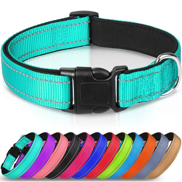 Joytale Reflective Dog Collar,Soft Neoprene Padded Breathable Nylon Pet Collar Adjustable for Large Dogs,Teal,L