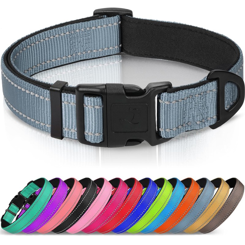Joytale Reflective Dog Collar, Soft Neoprene Padded, Metal D-Ring, Nylon Pet Collar Adjustable for Small Dogs, Gray, S