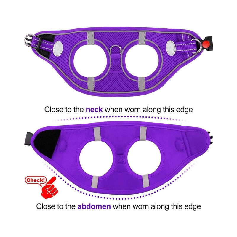 - SAFETY ESCAPE PROOF REFLECTIVE DESIGN - The 360° highly reflective strips and 4 reflective wide bands provide good visibility in the dark outdoors. No-Choke design protects dog's trachea and throat from pulling and choking. There is also a quick-release buckle for extra security