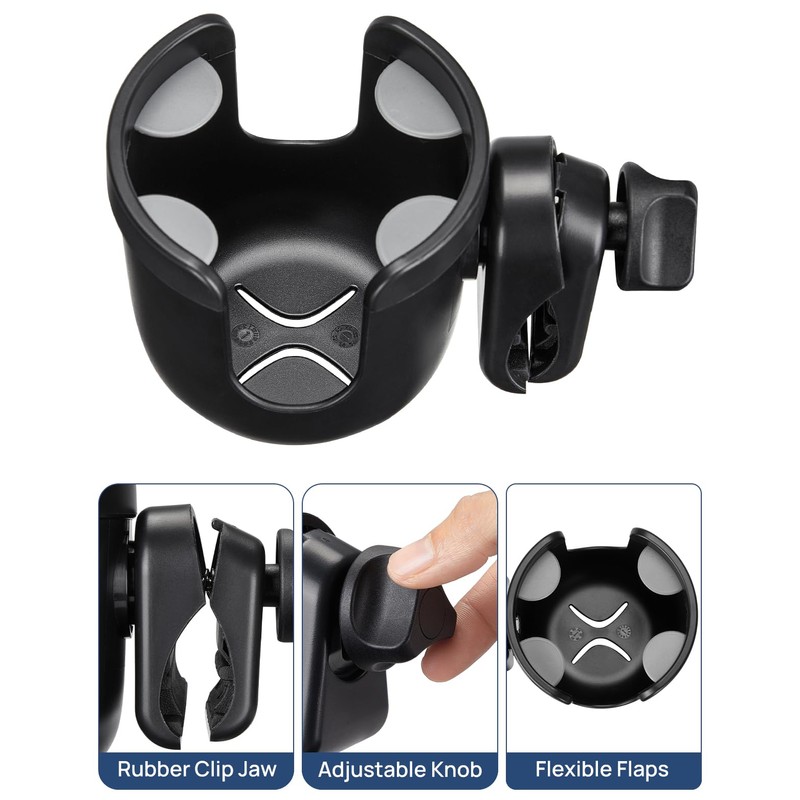 - Fits any size for your need: Rollator cup holders are designed with flexible flaps, which could adapt to any size of water cup to remain upright. Open sides accommodate bottles with handles, such as a baby bottle with a handle, a cup with a handle, etc