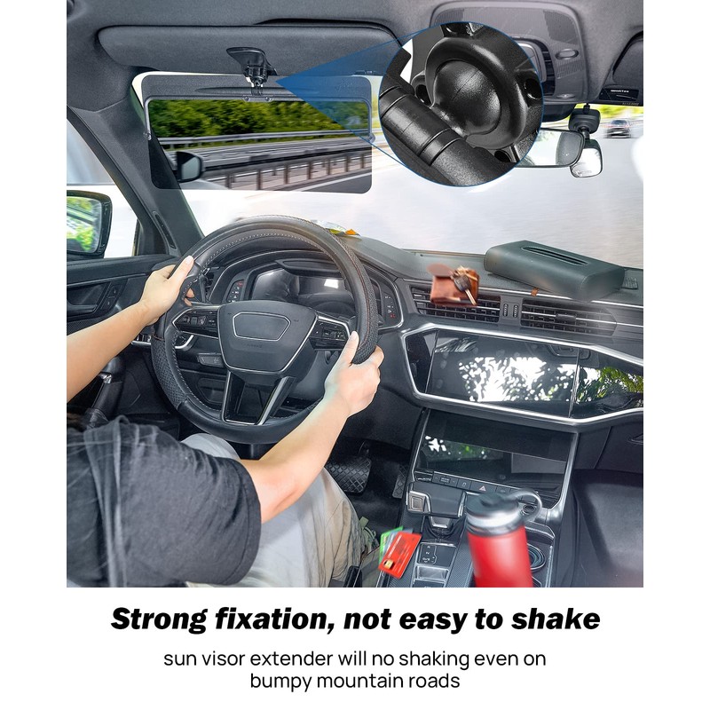 - 【Quick & Secure Installation】: Install it in just 5 seconds! This extender fits snugly onto your car's original visor, staying firmly in place without slipping. Adjust the visor's 180-degree angle with a simple pinch on the spiral plastic spacers, all without leaving any fingerprints. Made from premium, heat-resistant PC material, this lens resists deformation and stands up to high temperatures