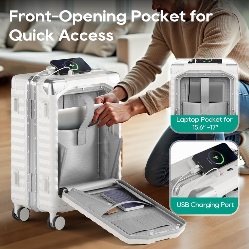 - One-touch Unlocking: Front compartment for quick access to your laptop. Side TSA locking mechanism, easy to open by pressing on both sides, more secure and durable