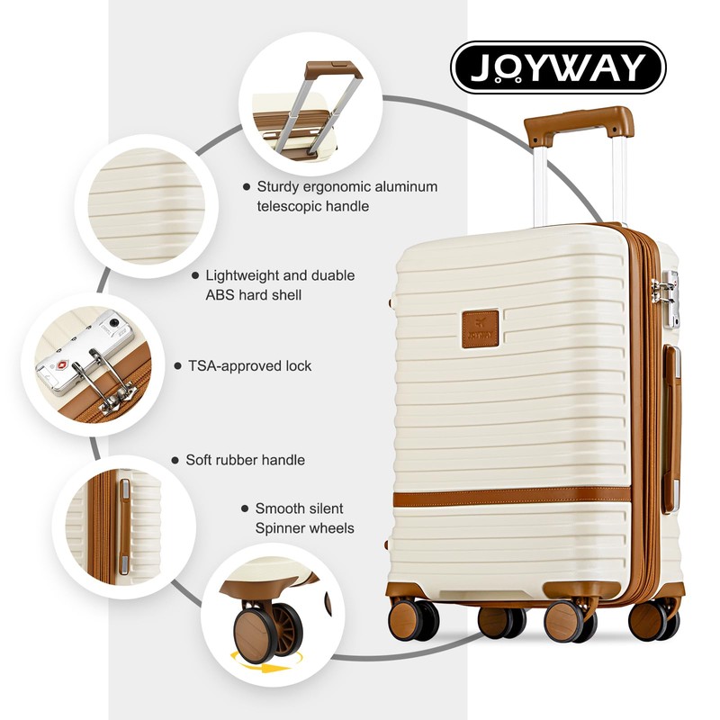 Joyway Luggage Set 3 Piece Suitcase Sets with Spinner Wheel,Hardside Expandable Travel Laggage with TSA Lock (13/20/24/28 White brown