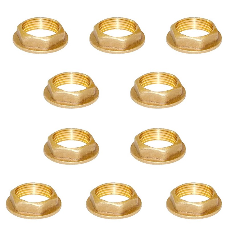 Joywayus 1/2" Female Thread Brass Pipe Fitting Flange Hex Lock Nut For Plumbing and Nut Spacer Pipe Hose (Pack Of 10)