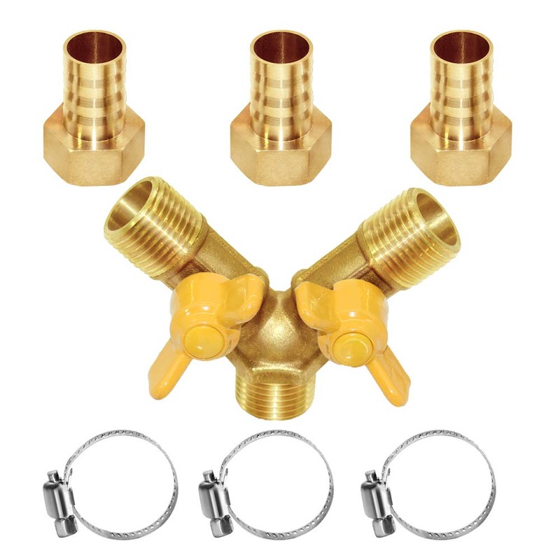 This Joywayus Y hose fitting is made of forged brass and connects and branches three hoses.