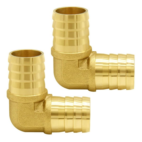 Joywayus 5/8" Hose Barb 90 Degree L Right Angle Elbow Union Fitting Intersection/Split Brass Water/Fuel/Air (Pack of 2)