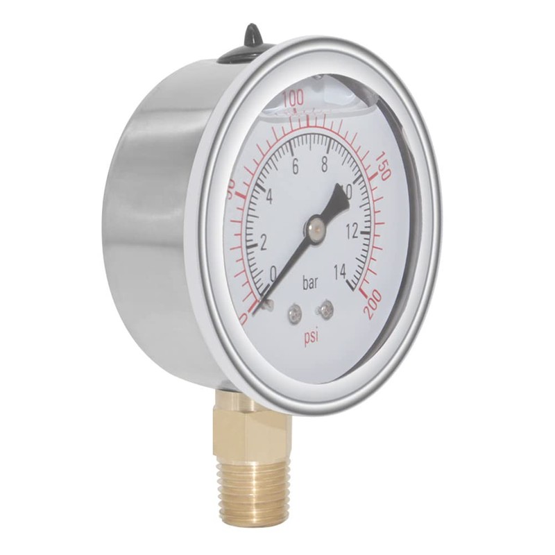 Joywayus Pressure Gauge 0-200 PSI Brass 1/4"NPT Male Thread Lower Mount, Glycerin Filled, Stainless Steel Case, Multiple Function