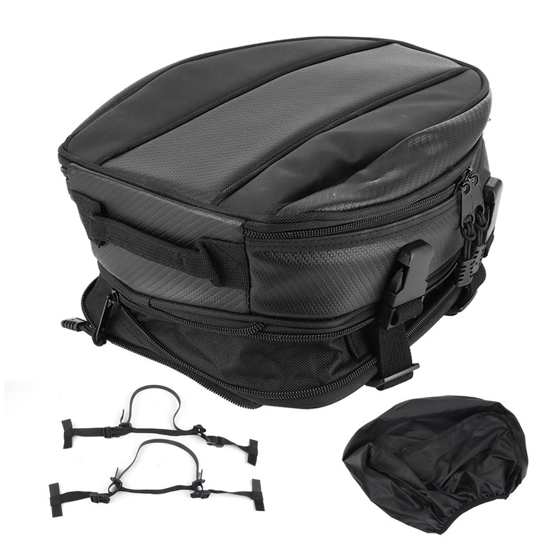 2. This motorcycle tail bag small boasts a 10L capacity, offering ample room for essentials like tools, clothing, and even a helmet