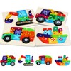 - 【4-PACK TRANSPORTATION PUZZLES】This set of 4 pack wooden transportation puzzles included excavator, ship, truck, school bus. Each puzzle contains 10 number vivid pieces, and come together to form four unique transportation shape puzzles.