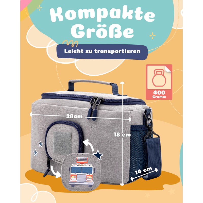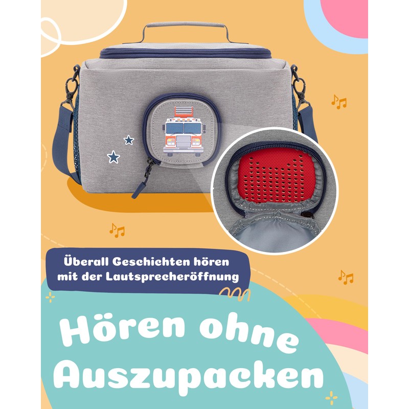 JP Journey Bag for Toniebox Boy - for Figures and Box in the Car and for Travel, Grey-blue fire brigade, Shoulder bag with flexible inner compartments and speaker opening