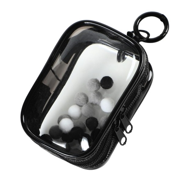 JP Number Clear Pouch, Pushing Activity, Acta Case, Mini Pouch, Clear Case, Storage, with Fluffy Ball (Cube, Black)