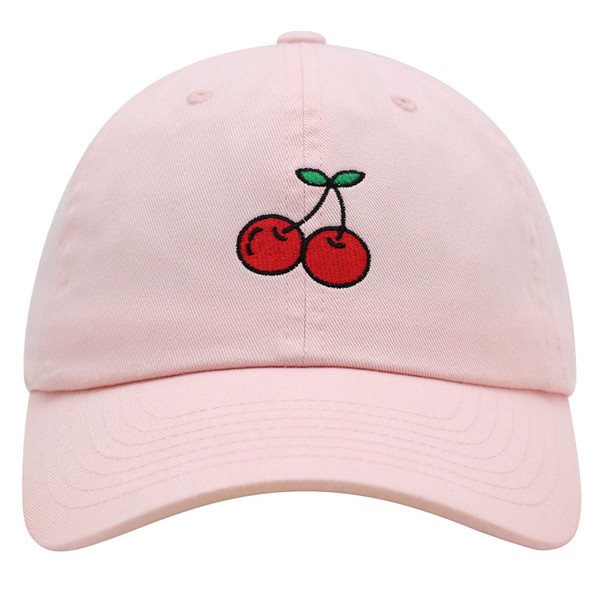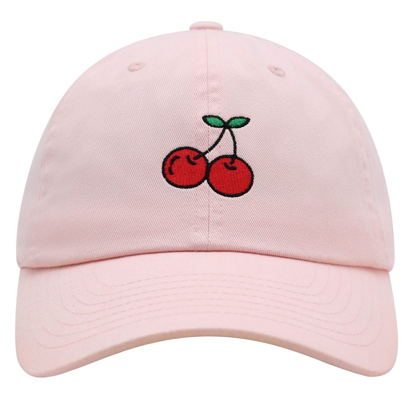 JPAK Cherries Premium Dad Hat Embroidered Cotton Baseball Cap Fruit Light Pink