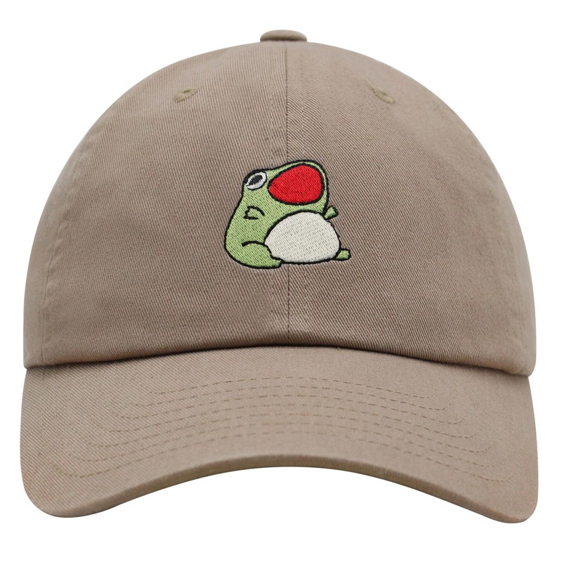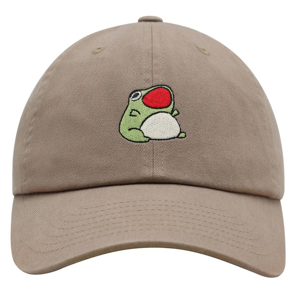 JPAK Chubby Frog Open Mouth Premium Dad Hat Embroidered Cotton Baseball Cap ChubbyFrog OpenMouth Khaki