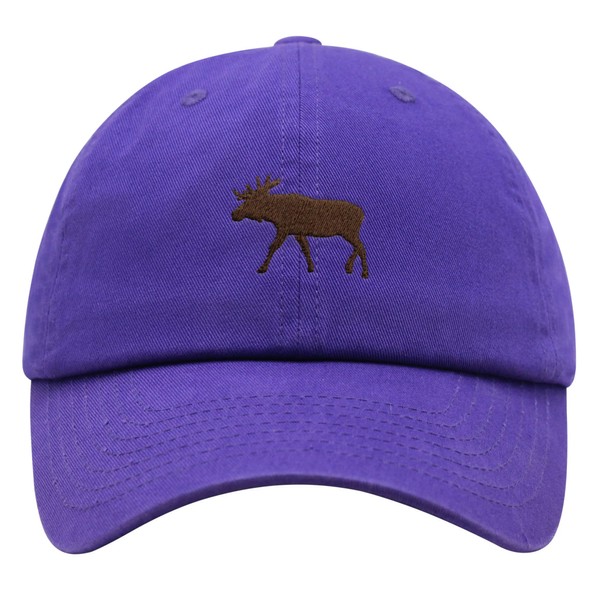JPAK Moose Premium Dad Hat Embroidered Cotton Baseball Cap Elk Hunting Purple