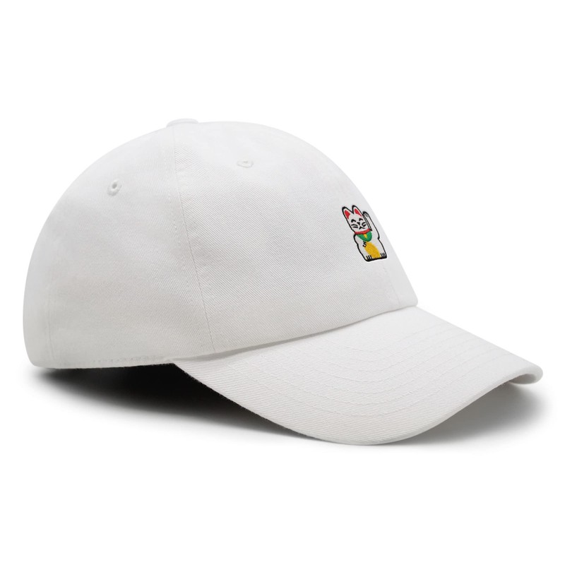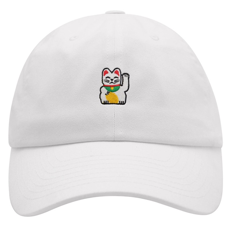 JPAK Waving Cat Premium Dad Hat Embroidered Cotton Baseball Cap Japanese Statue White