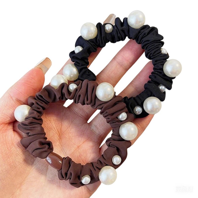 - Product Specifications: Fashionable black and coffee color. Hair rubber diameter approx. 1.8 inches (4.5 cm), large pearl size approx. 0.5 inches (1.2 cm), small pearl size approx. 0.2 inches (0.6 cm)