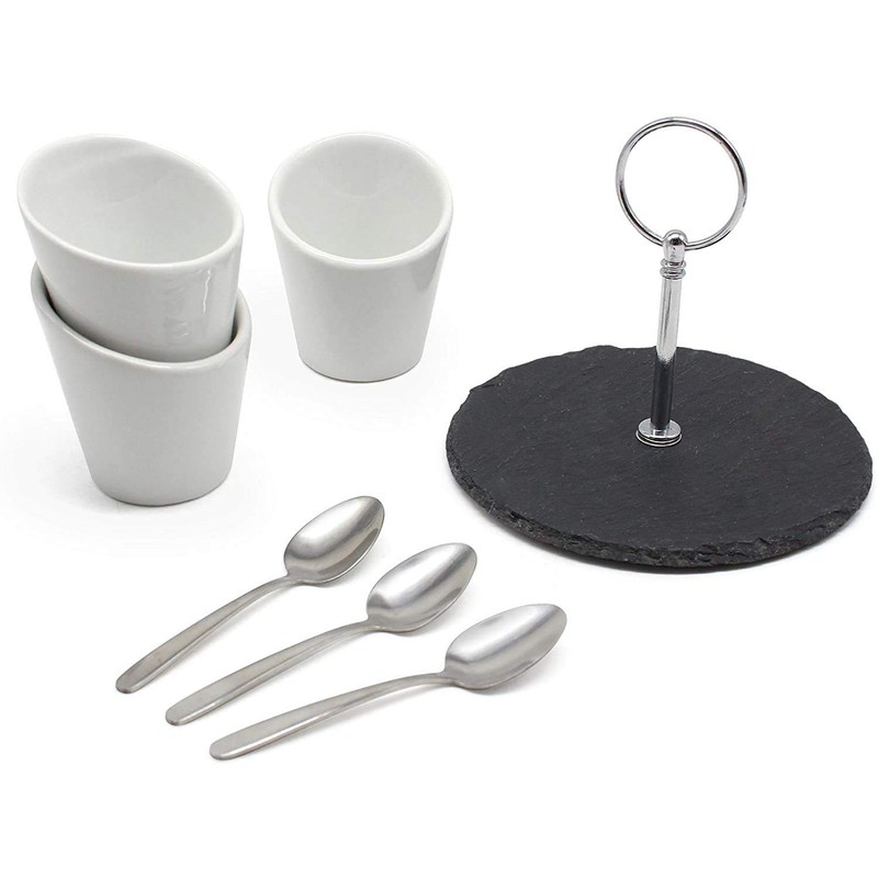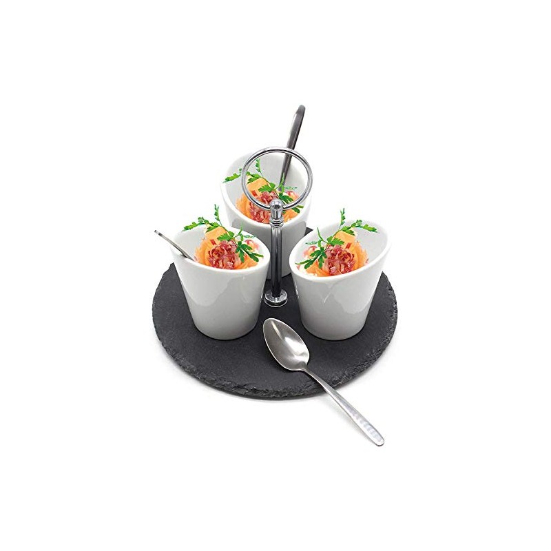 JPH Tapas Dishes Platter Appetizer Dips Serving Set Ceramic Nibble Cups Slate Disk Stainless Steel Spoons