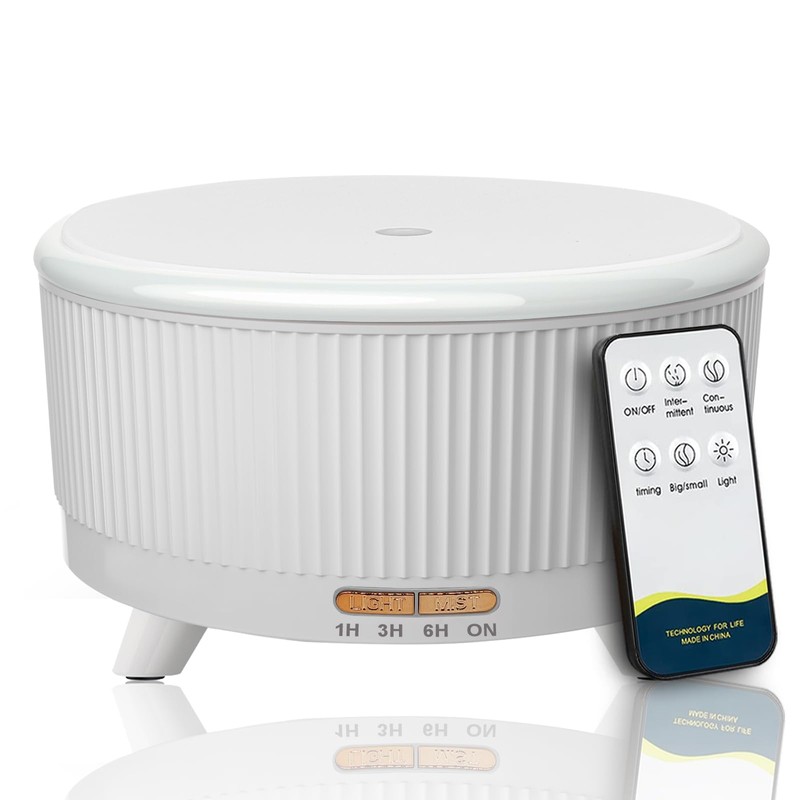 - Essential Oils Diffuser With 7 Color Light & RemoteThe essential oil diffuser for large room comes with remote control and allow you change the Misting/Lighting/Timer mode for the essential mist diffuser. Aromatherapy oil diffuser large room provide 7 LED colored light options, The color can be cycled through or set it to one fixed color. The soft light and aromatherapy diffusers essential mist creates romantic atmosphere which help you relax your tired body and mind after a long day of work
