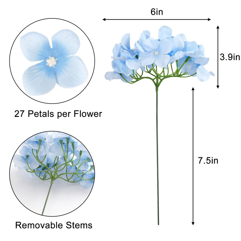 - [Fun to DIY] Artificial Hydrangea heads and stems can be disassembled and combined. The stem is detachable, you can freely bend and cut to match your vase. You can also mix hydrangea with other artificial flowers to make bouquets according to your personal preference.