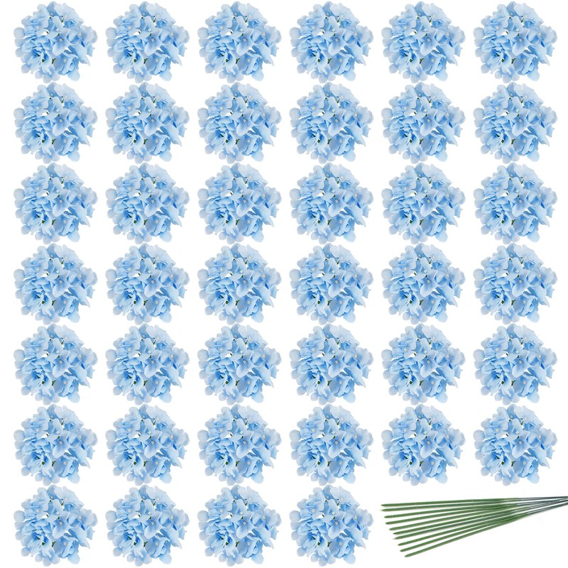 - [Package contains] 40 artificial hydrangea flower heads and 40 stems. Each hydrangea flower head has 27 petals. Flowers and stems are separated to meet your different needs.