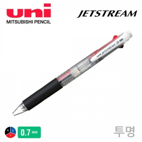 (JQ) Transparent Mitsubishi Jetstream Ballpoint Pen 3 Colors 0.7mm X ( 2-pack ) / (제이큐)투명 미쯔비시 제트스트림 볼펜 3색 0.7mm X ( 2매입 )