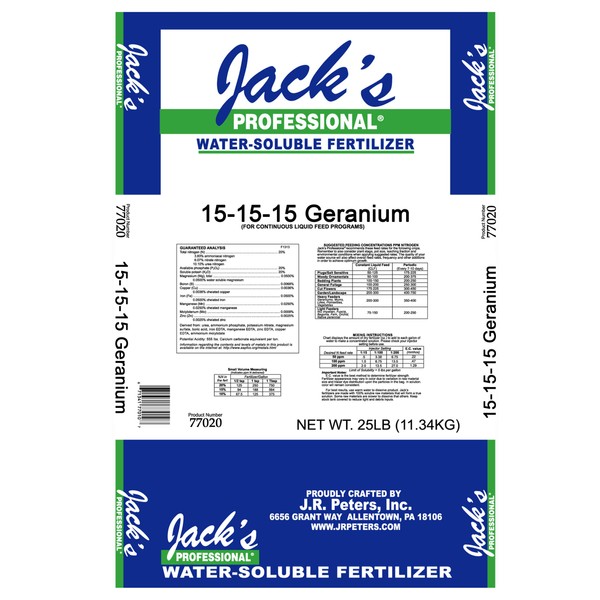 JR Peter's 77020 Jack's Professional Geranium 15-15-15 Fertilizer, 25 lb