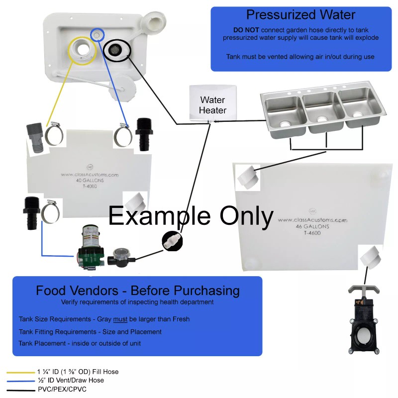 Air Vent Connection to allow air in/out during use on non-pressurized Fresh Water Holding Tank