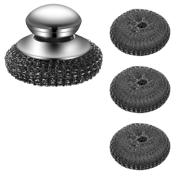 Jravezt ステンレスたわし キッチン カナダワシ 持ち手 本体+替え4個 金たわし焦げ取り 持ち手付き 鉄鍋洗い フライパン洗い 食器洗い シンク掃除