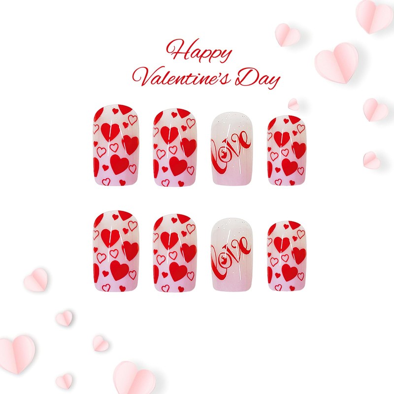 Quantity: 24pcs pink love heart valentines day press on nails for women and girls