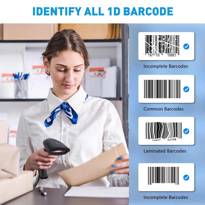 - 【Laser Scanner Supports almost all 1D Barcodes】 Codabar, Code 11, Code93, MSI, Code 128, EAN-128, Code 39, EAN-8, EAN-13, UPC-A, ISBN, Industrial 25, Interleaved 25, Standard 25, Matrix. Reads damaged, fuzzy, reflective and smudged barcodes.
