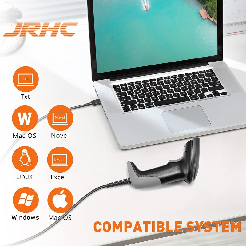 JRHC Barcode Scanner USB Wired 1D Laser Automatic Barcode Reader, Handhold Bar Code Scanner for Store, Supermarket, Warehouse