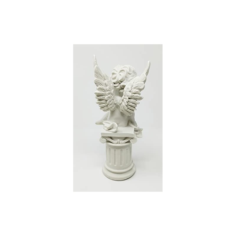 JRose Collections Praying Angel Cherub Sitting on Pillar Wings Baby Memorial Cherub Ornament 20cms High (JR-1481)