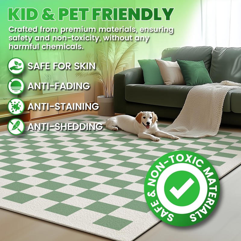 - 【FRIENDLY FOR SKIN & PETS】Made from selected non-toxic, high-quality materials, this rug is free from harmful chemicals. The low-pile design prevents pet dander and hair from getting trapped, and pets’ paws won’t get snagged or caught on the edges.