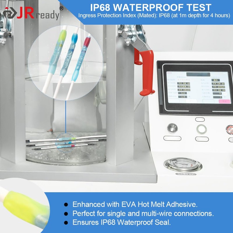 • 【Versatile and Durable Inline Splice Design】 MiniSeal crimp connectors feature a plated copper barrel and separate sealing sleeve to prevent insulation damage during the crimping process and support single or multi-wire (up to 2 wires) connections. The JRready MiniSeal crimp connector kit is smaller and lighter, making it ideal for wire connections in tight spaces and demanding environments.