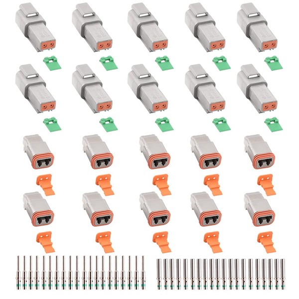 JRready ST6246 Deutsch 2 Pin Connector 10 Sets, DT04-2P DT06-2S Gray Waterproof Electrical Wire Connector with Solid Contacts 14-20AWG
