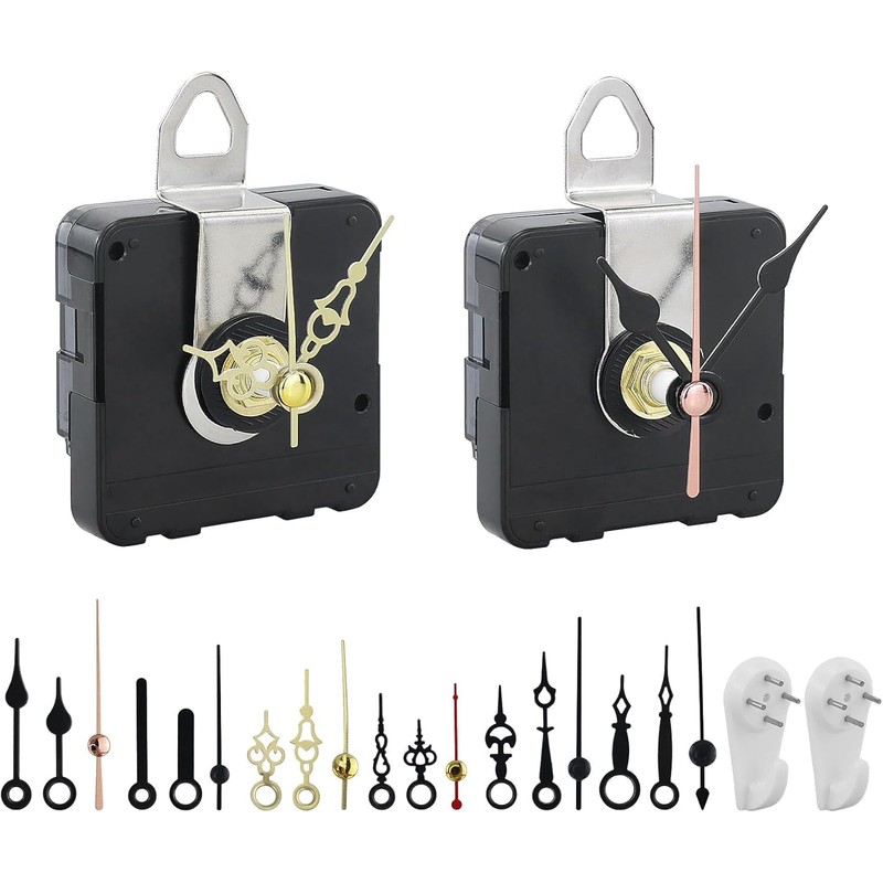 - Package contents: 2 pieces clockwork, 2 pieces metal hooks, 6 sets of hands, 2 pieces mounting hooks, 2 pieces plastic washers, 2 pieces brass washers and 2 brass nuts. It is easy to install, easy to use, suitable for different types of watch frames.