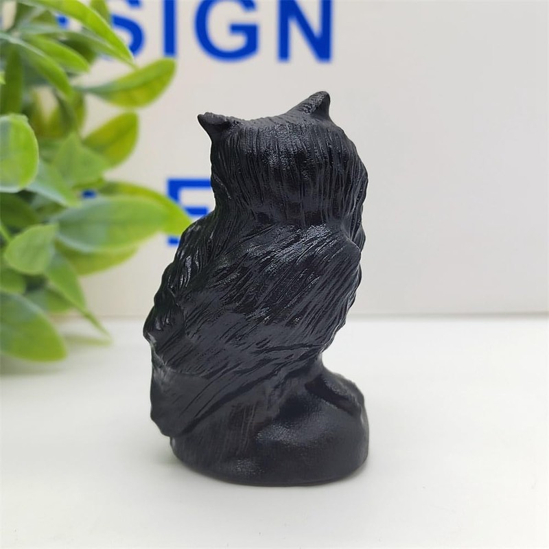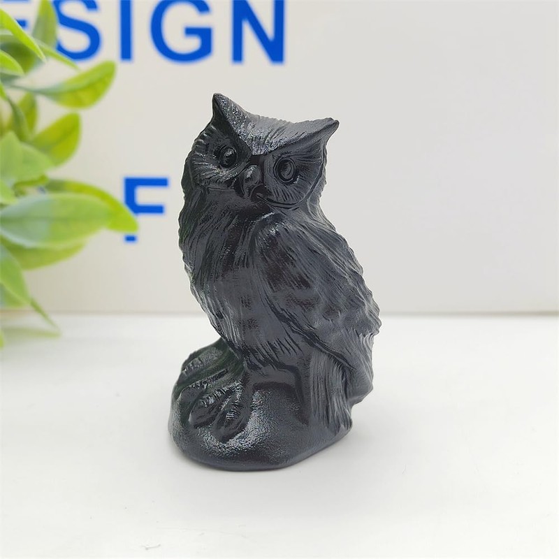 JRVIPSJ Natural Obsidian Owl Skull Crystal Owl Skull Crystal Figurine Carved Skull Crystal Decoration Stone Reiki Healing (Obsidian)