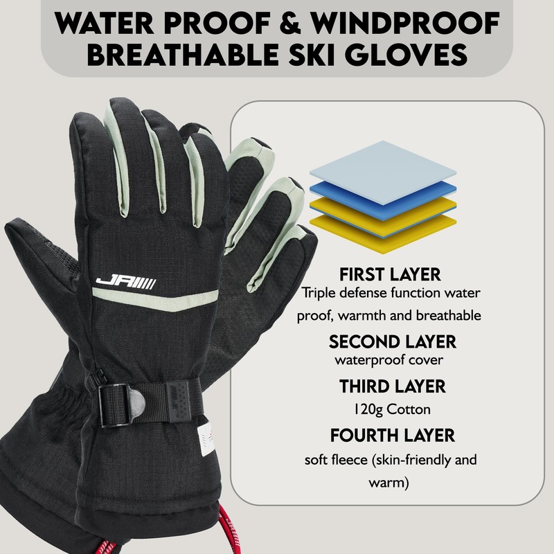 JRZHX Touch Screen Ski Gloves Women & Men with Quadruple Layer Protection, Wa...