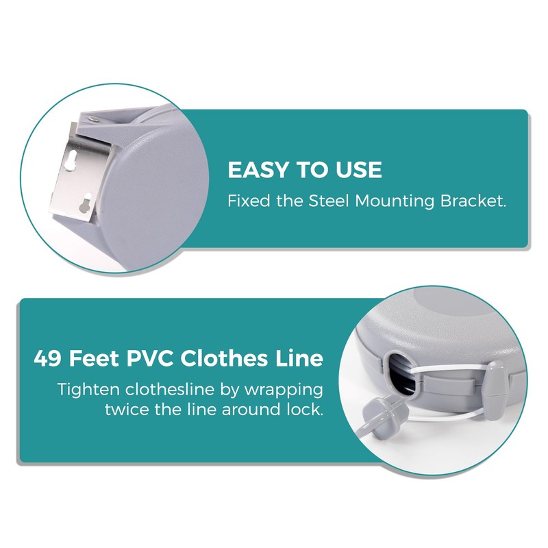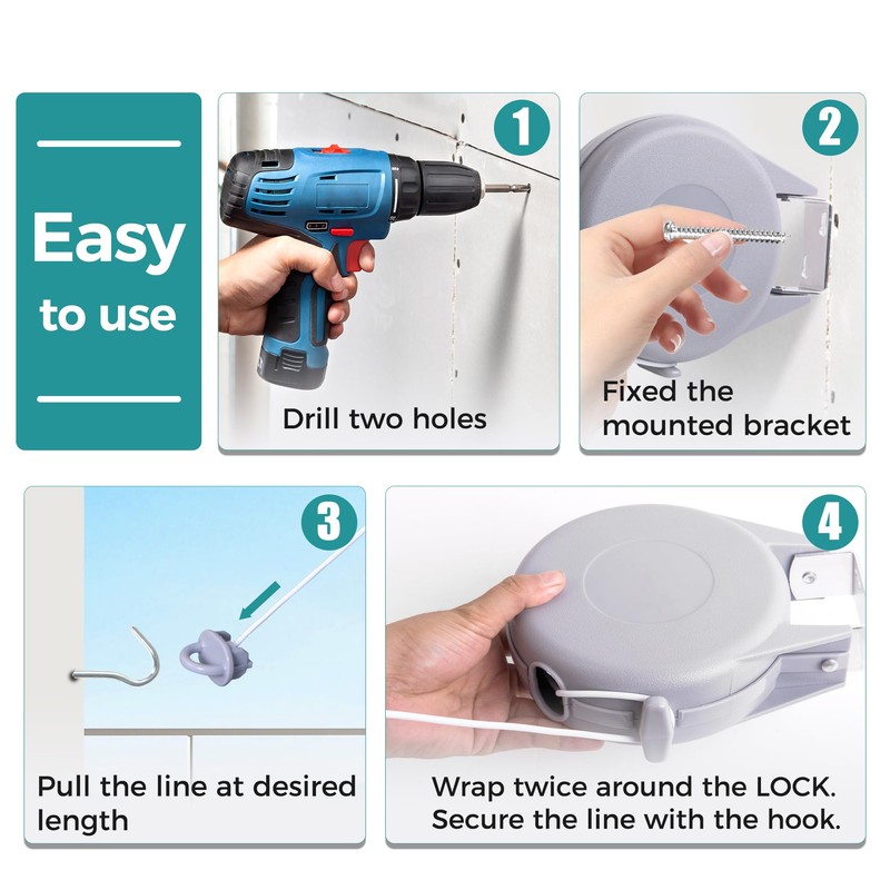 - AUTOMATIC DESIGN - Our double retractable washing lines are designed for easy extraction from the reel. Simply pull the rope to your desired length using the lock button. When not in use, they can quickly rewind to seal the unit from dirt and contamination.