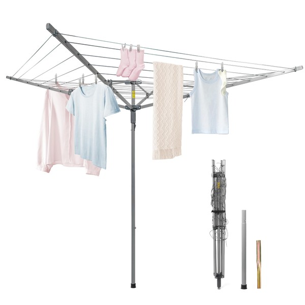 - JS HANGER Umbrella Drying Rack Outdoor, Rotary Retractable Dryer Adjustable Height Drying Rack 4 Arms with 131 ft Clothesline